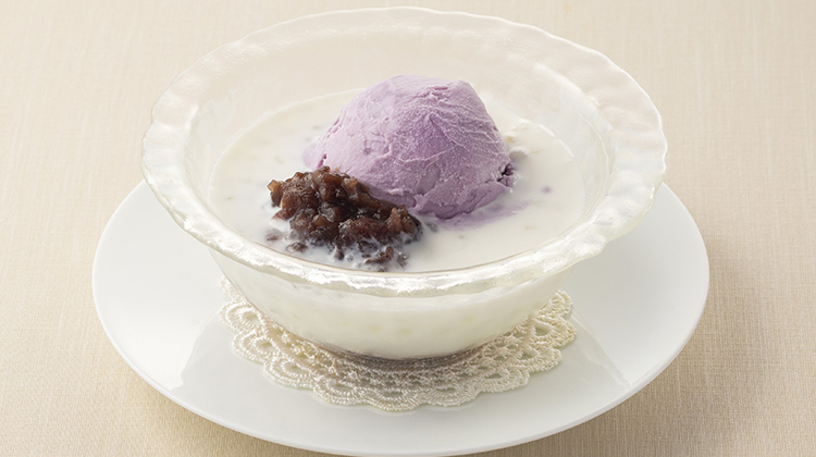 小豆とタピオカのココナツミルク、紫芋アイス添え